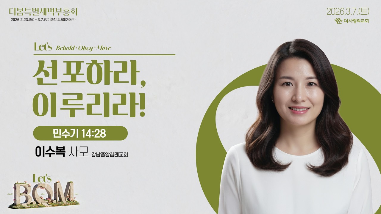 26.03.07 더사랑의교회 더봄특별새벽부흥회 설교 | 이수복 사모(강남중앙침례교회) | 선포하라, 이루리라! | 민수기 14:28